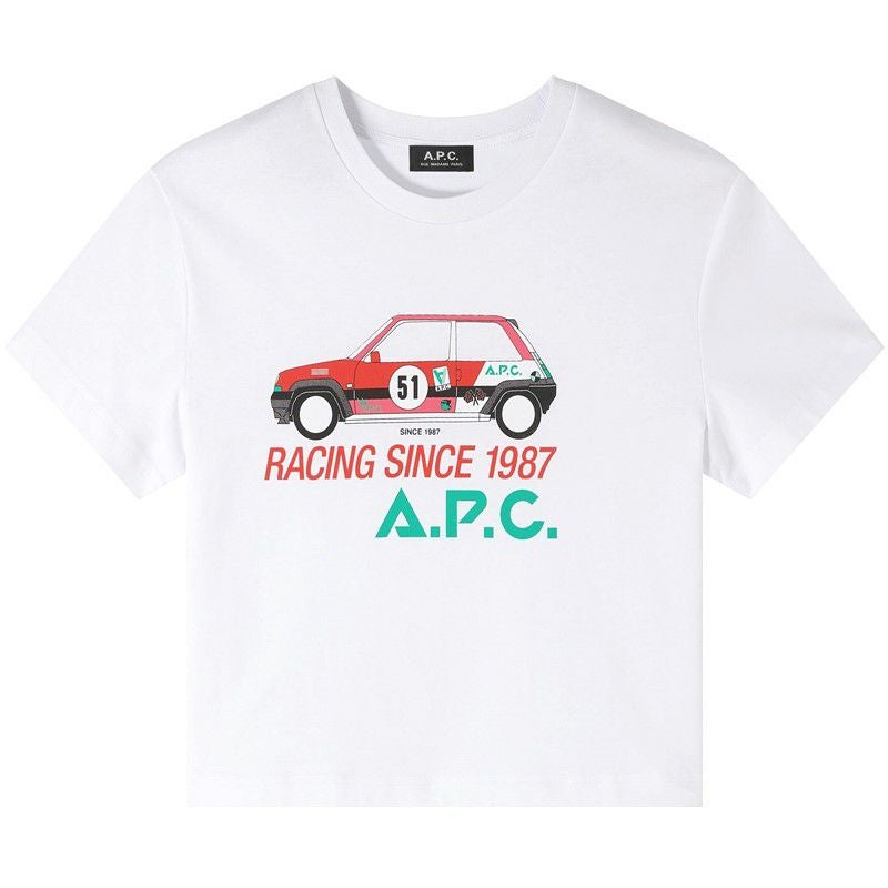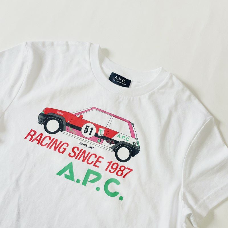 ボーイズのTシャツにありそうなレーシングカーをモチーフにしたカジュアルプリントがポイント。