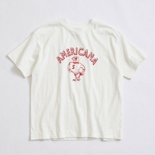 フロントには大きくAMERICANAのブランドロゴをプリントし、AMERICANAらしいグラフィックで。ボディはSHINZONEらしいパターンで作られているため、女性らしいシルエットを残したままカジュアルな印象で着ていただけるTシャツになっています。