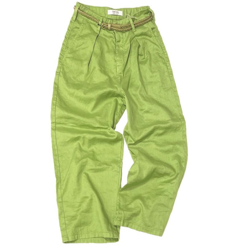 軽くて穿きやすく、夏らしい爽やかなカラーバリエーションのコットンリネン タックワイドパンツ。