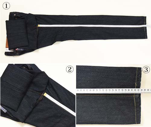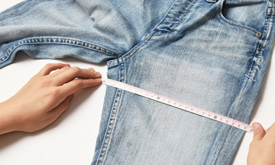 ① 股の付け根部分から縫い目に沿って裾までメジャーで計測して下さい。