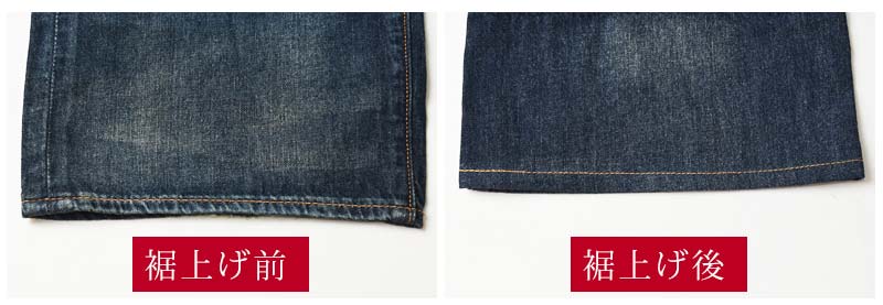- 当店の裾上げは「シングルステッチ」のみとなります。