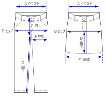 股下、約2センチ付近からのもも幅になります。F 総丈