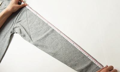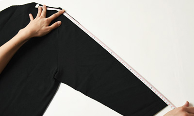 肩の切りかえし部分、上部の端から袖裾までの長さです。